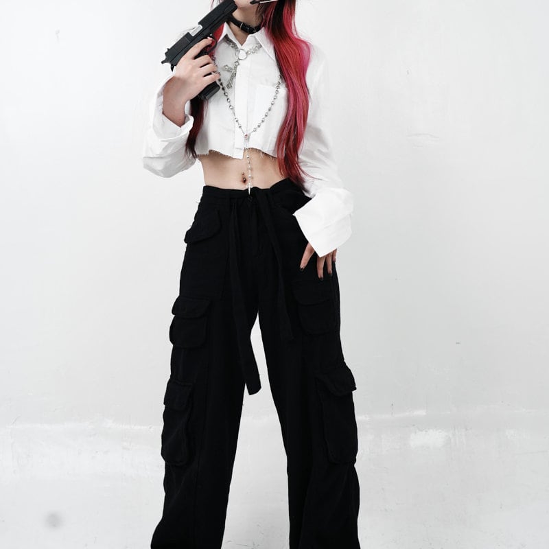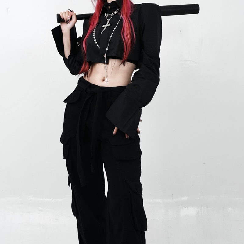 SEASONZ シャツ ショート ハイウエスト 長袖 腹出し へそ出し セクシー 衣装 地雷系 ゆめかわ