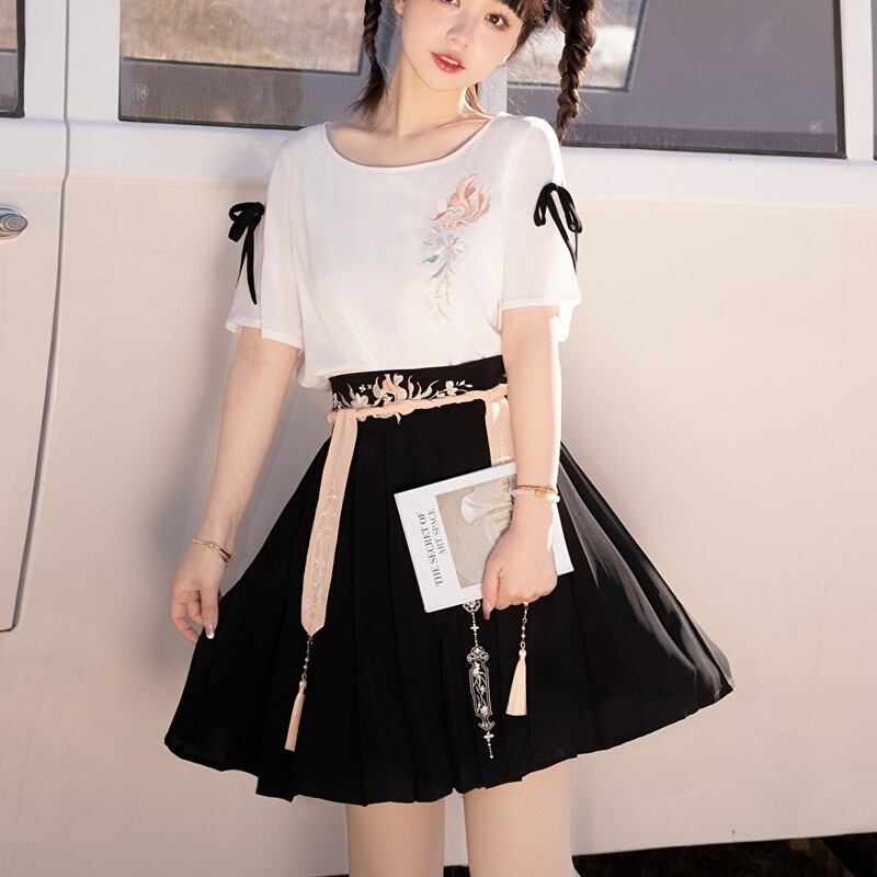 レトロな中華風刺繍がかわいいChineseGothicプリーツミニスカです