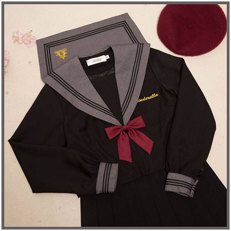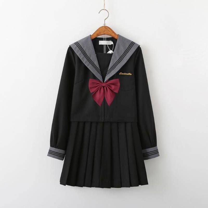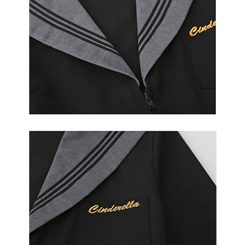 SEASONZ セーラー服 スカート セット ショート丈 ブラック グレー 制服 水兵服 リボン 学生服 JK レトロ コスプレ ゆめかわ