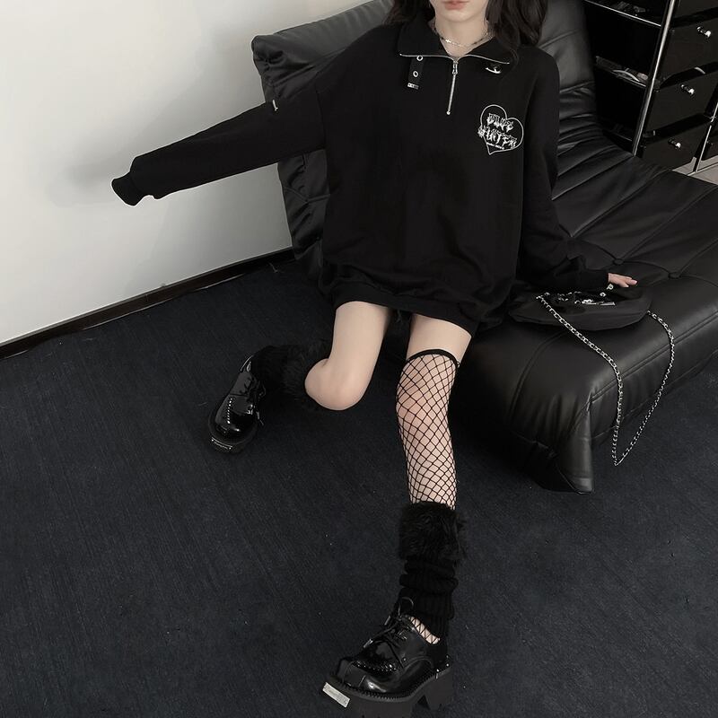 襟はZIPファスナー仕様、ハートの刺繍が病み可愛いサブカル系セーターです