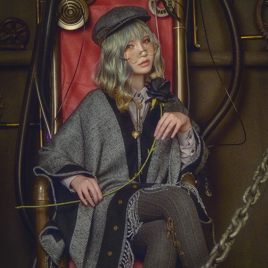 電脳異世界を表現するサブカルファッションの一つ、スチームパンクのショールです