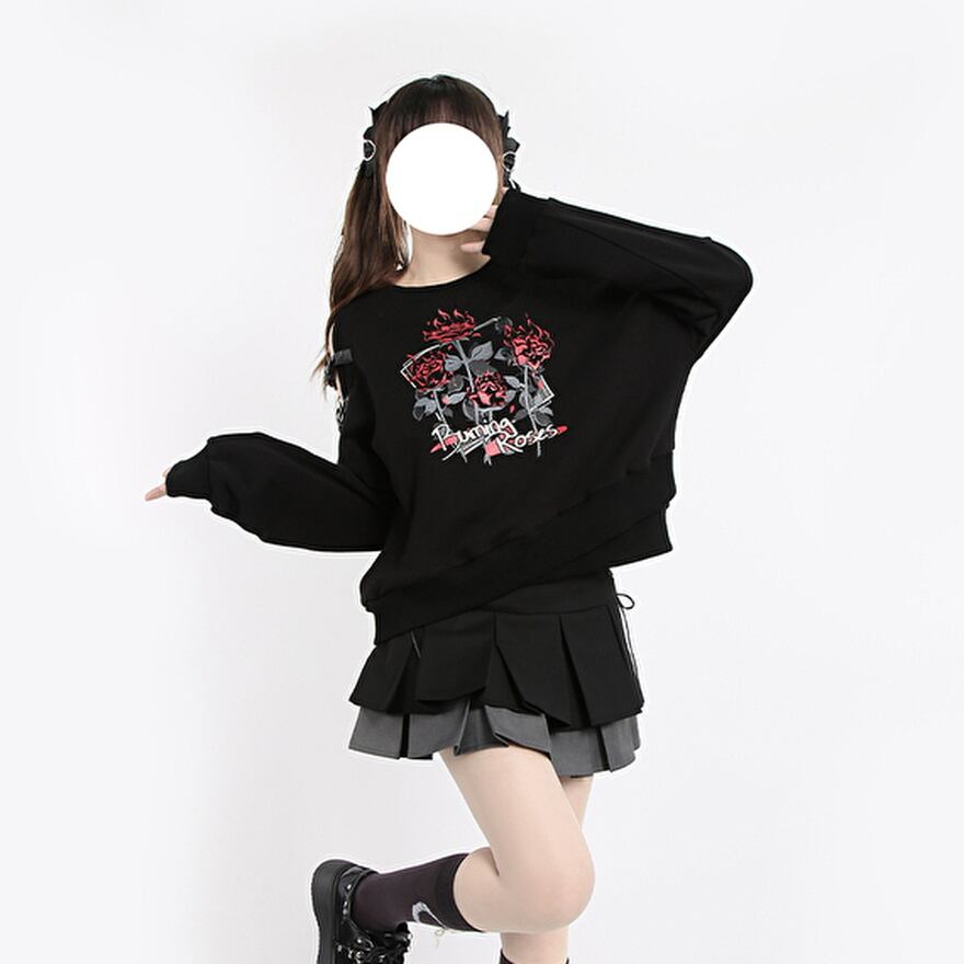 SEASONZ Catwish サブカル系 JK ロリータ ワンショル トレーナー ベルト Burning Rose 英字ロゴ かわいい