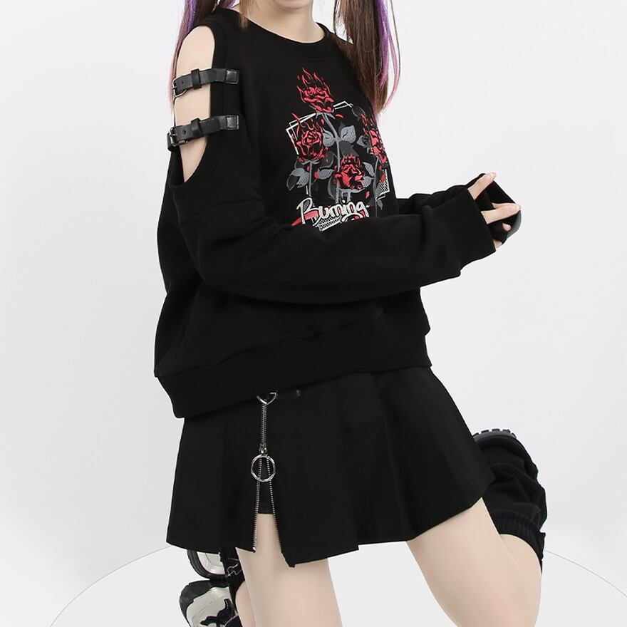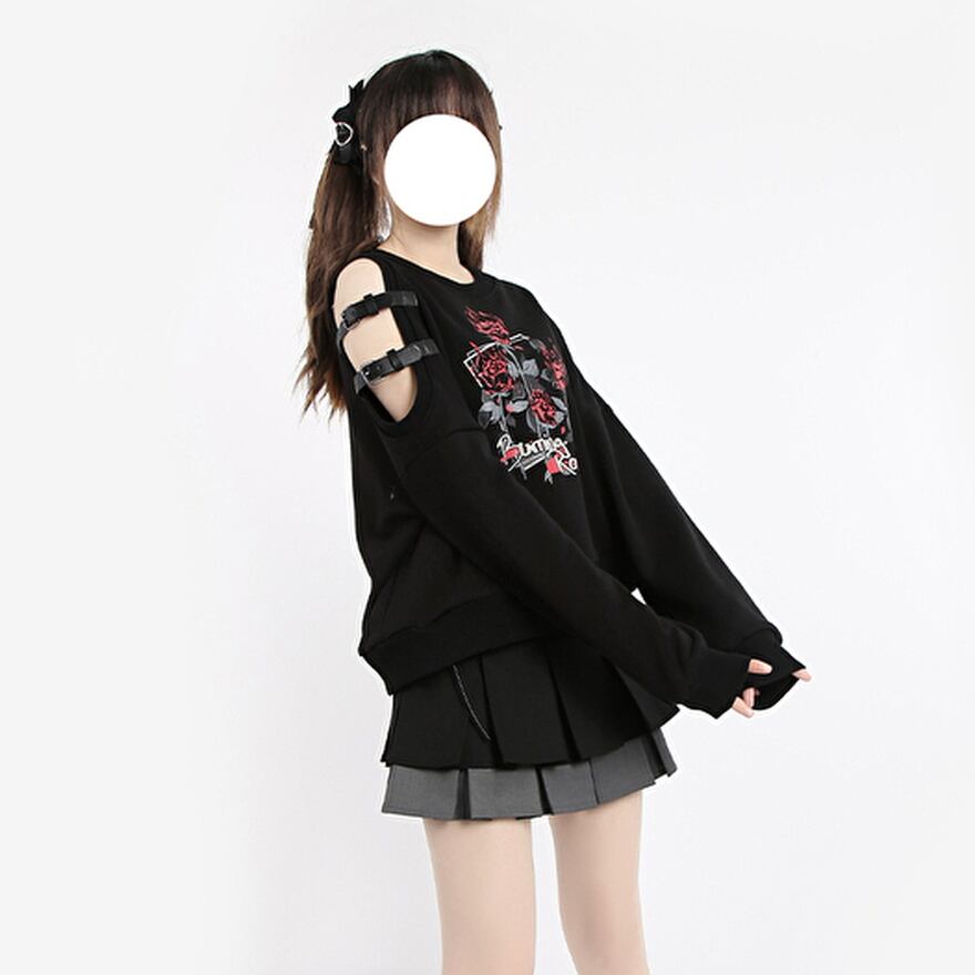 バックルベルトのワンショルダーがかわいいサブカル系トレーナー