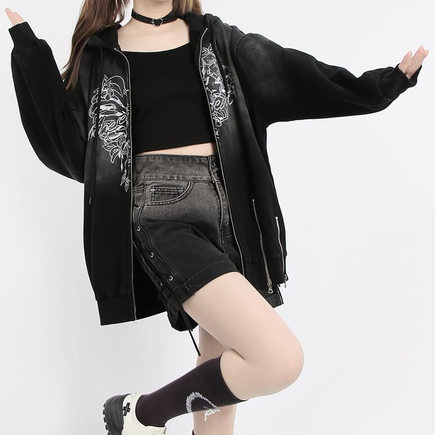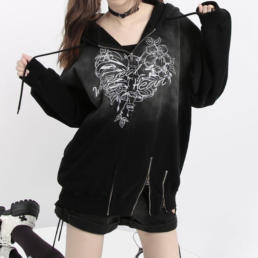 SEASONZ Catwish サブカル系 JK ロリータ パーカー グラデーション 刺繍 ダブル ZIP 花柄 かわいい