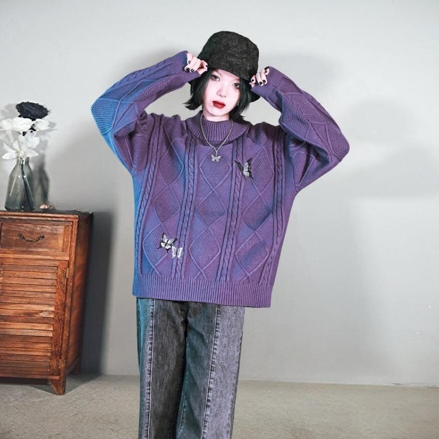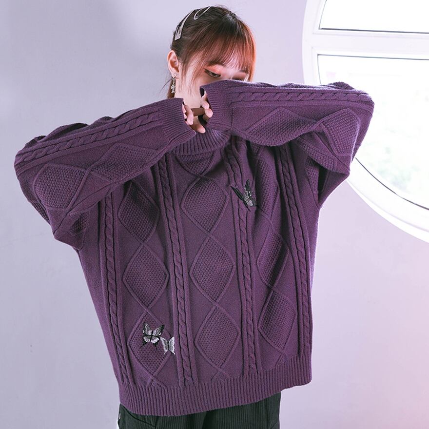 SEASONZ サブカル地雷系 古怪舎 ニット セーター butterfly 刺繍 ケーブル編み ざっくり編み 病み可愛い サブカル服 ストリート系 普段着 控えめ ゆめかわ