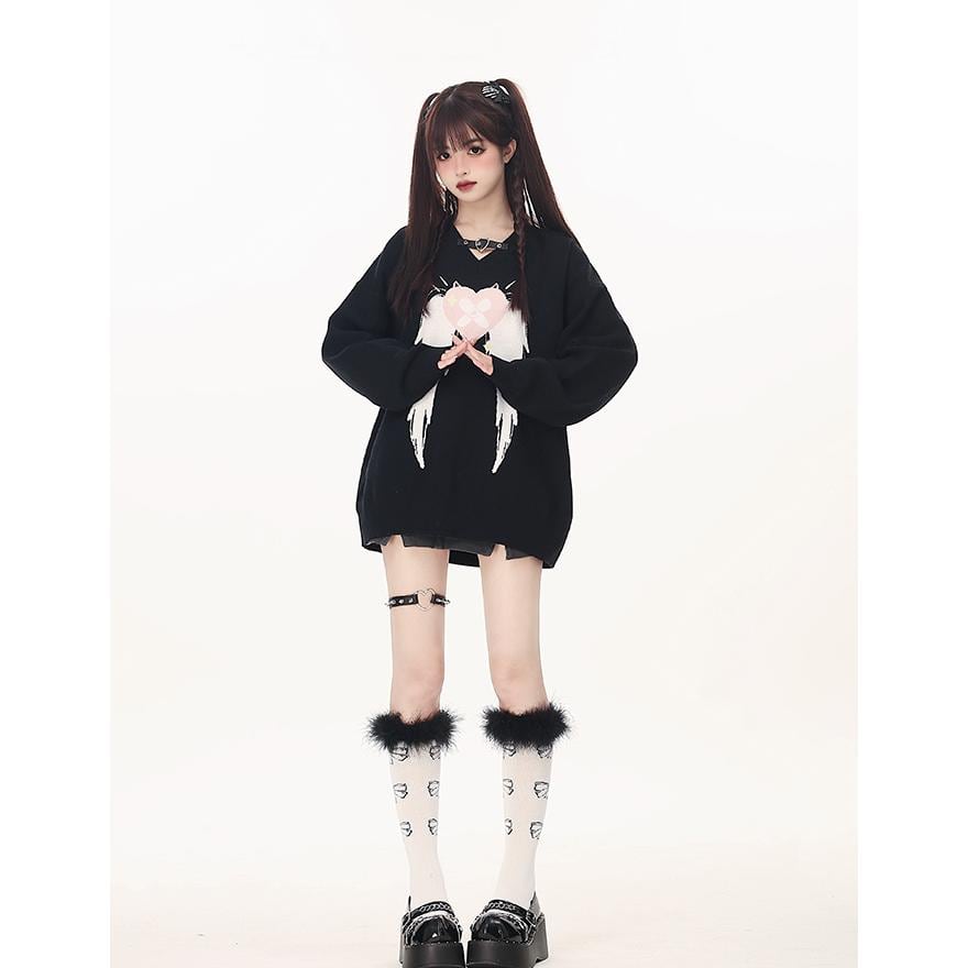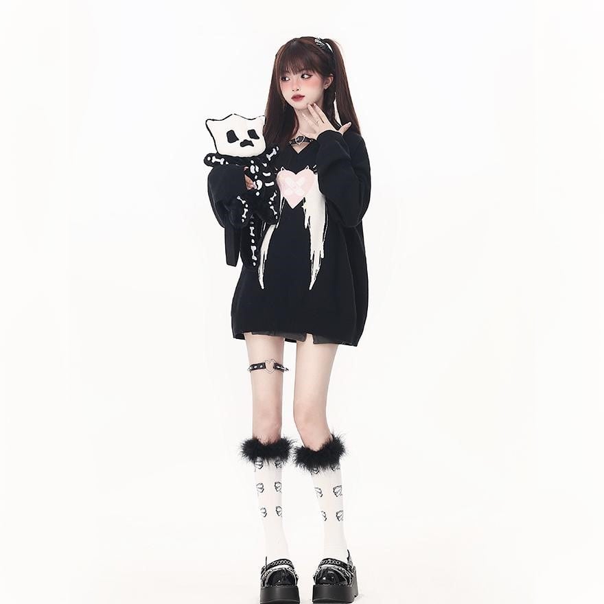 大きくプリントされたハート×ウィングが病みかわな長袖トップスです。