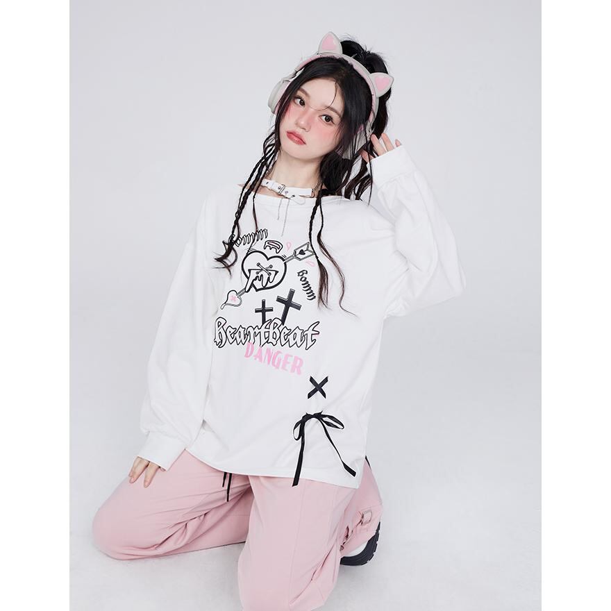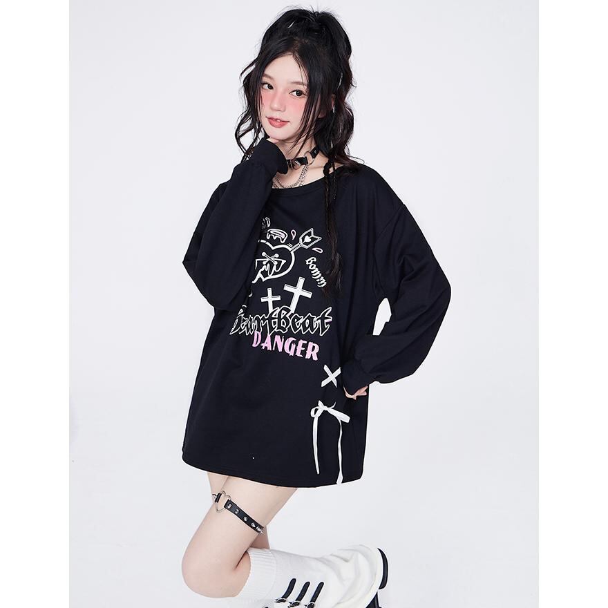 SEASONZ ゴスロリ イラスト CRAZYGIRL 長袖 トレーナー ハート 十字架