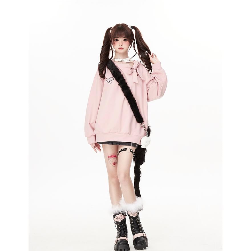SEASONZ サブカル系 CRAZYGIRL 長袖 トレーナー シャツ リボン ハート ロゴ かわいい ロリータ ストリート 甘ロリ ゆめかわ