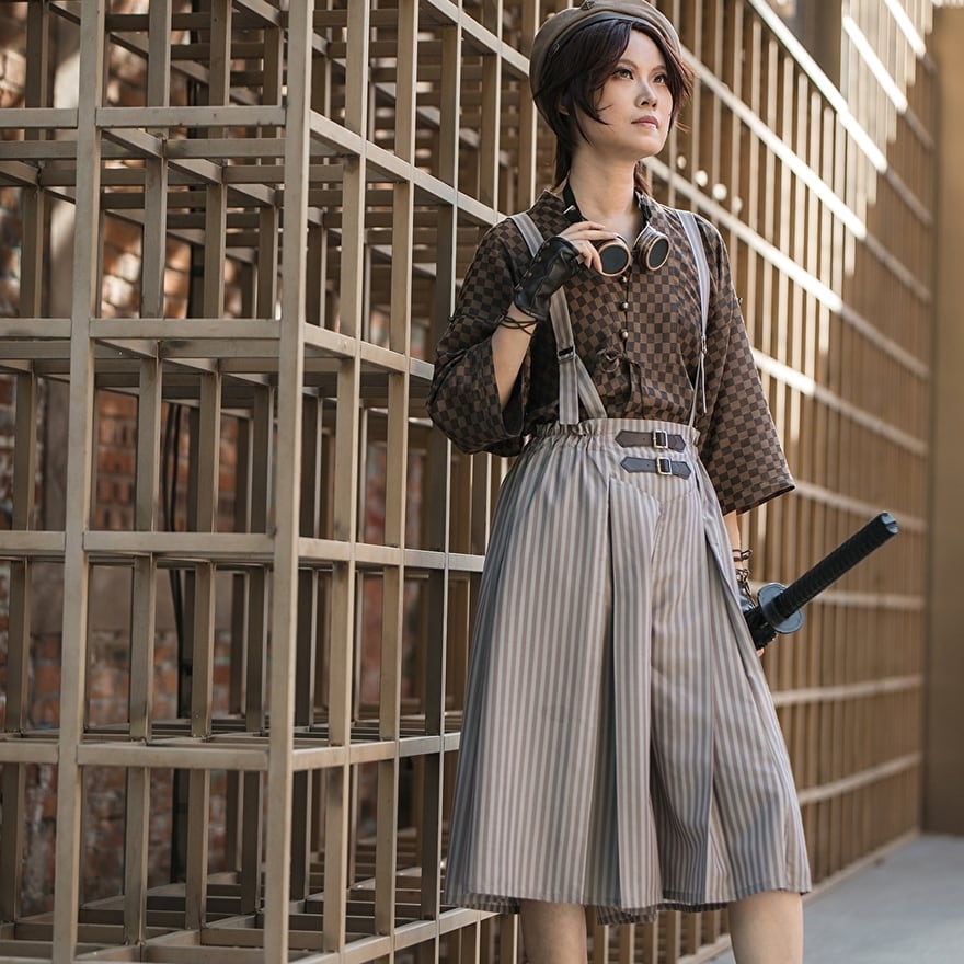 電脳異世界を表現するサブカルファッションの一つ、スチームパンクのユニセックスワイドパンツです