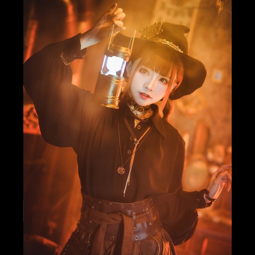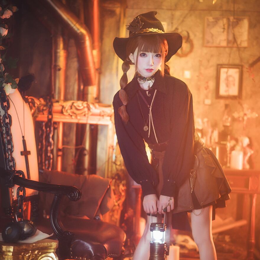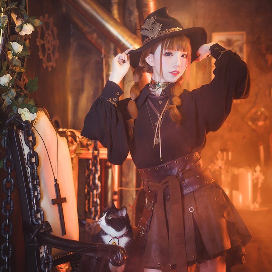電脳異世界を表現するサブカルファッションの一つ、スチームパンクのユニセックス長袖ブラウスです