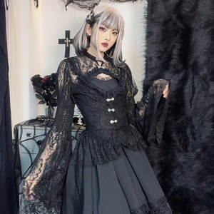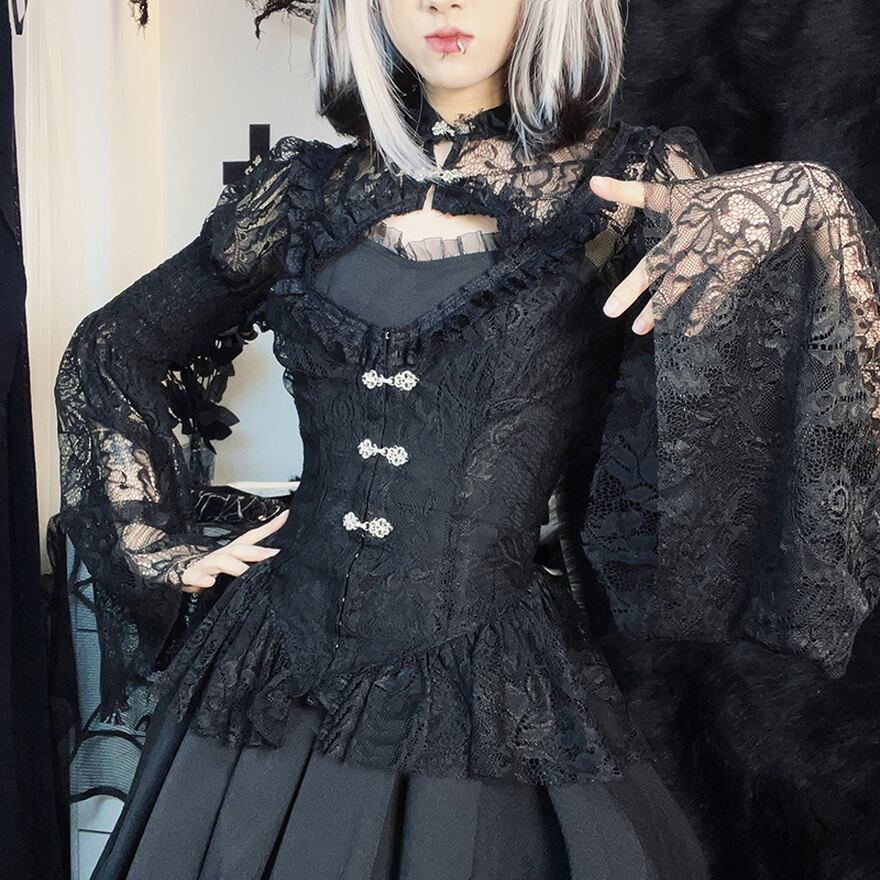 SEASONZ ゴシック ロリータ ブラウス レース シアー トランペットスリーブ 病み可愛い
