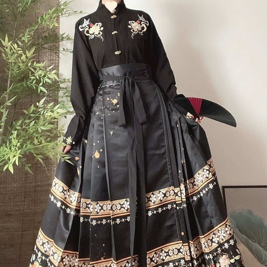 SEASONZ 中華系 ロリータ系 スカート プリーツ ロング丈 漢服 チャイナ服 ウエストベルト紐 ヴィンテージ風 高見え