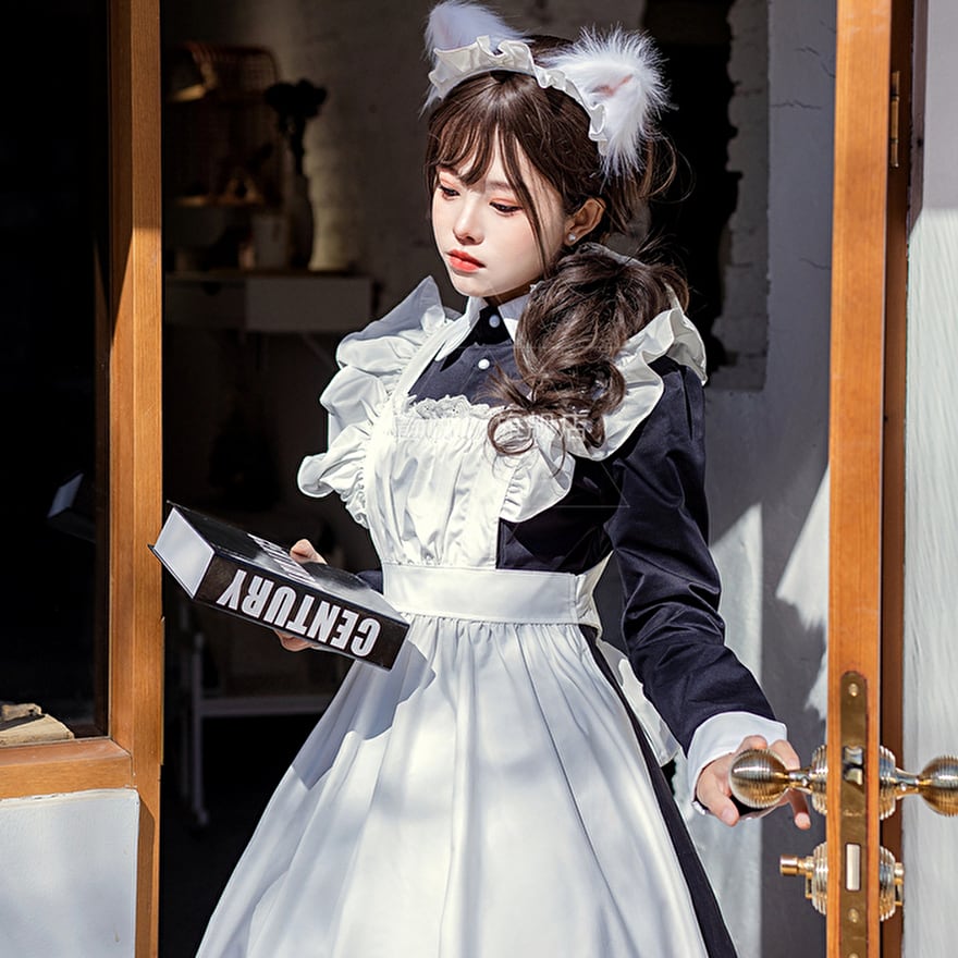 SEASONZ メイド服 セット コスプレ コスプレ ハロウィン 文化祭 学園祭 衣装 ロリータ ワンピース ロング丈 長袖 エプロン レース フリル 秋葉原系 コンカフェ ろりーた 服