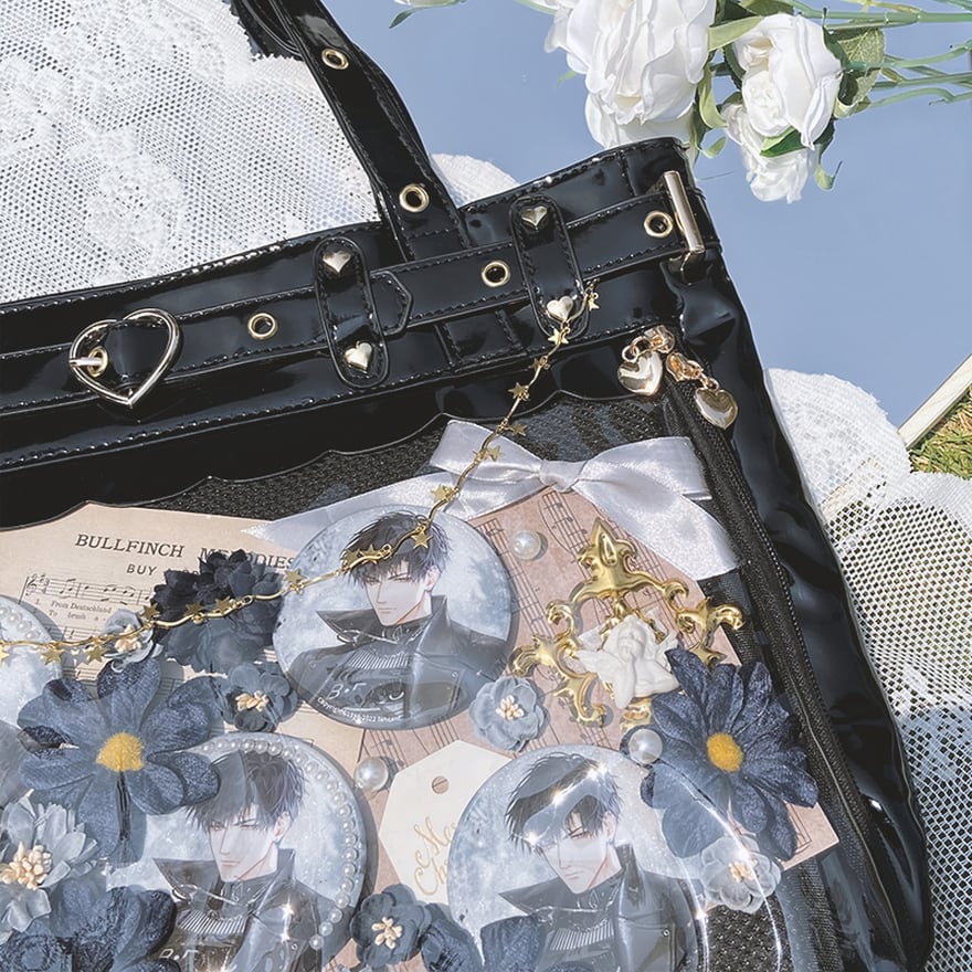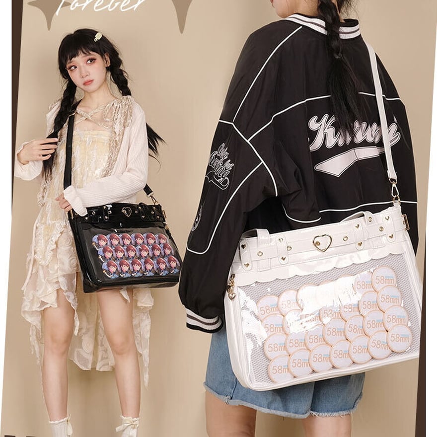 PUレザー素材に表面は好きなアイドル写真や缶バッジを収納してオリジナルの痛バッグにカスタム出来ます。