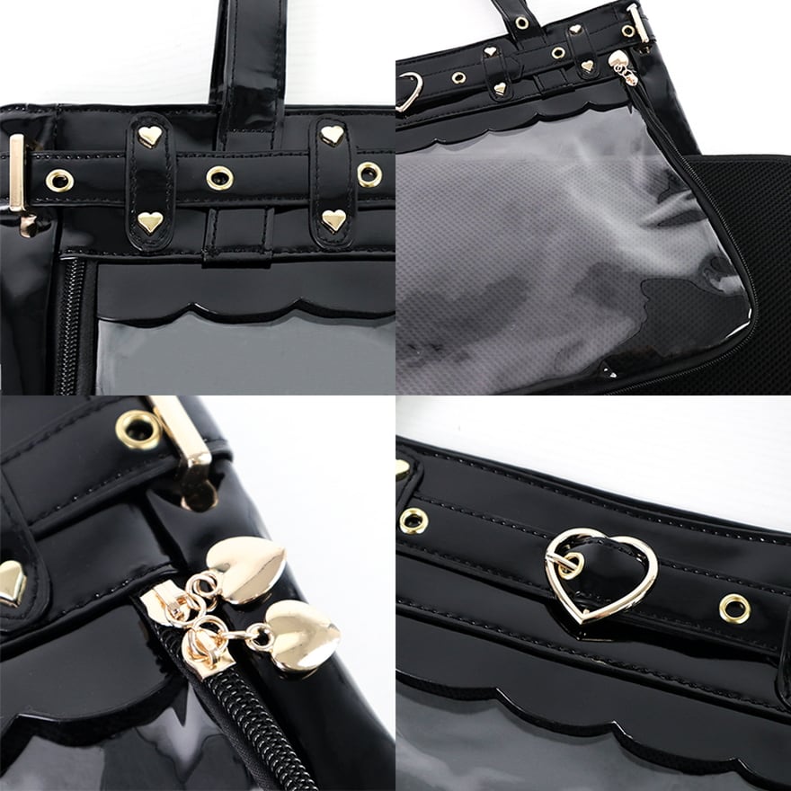 ハートの留め金がかわいいちょっと痛いショルダーバッグです