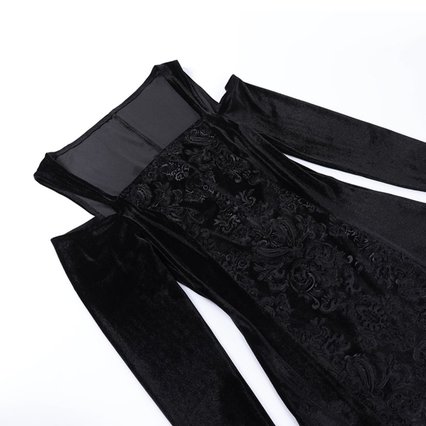 SEASONZ ゴスロリ系 ワンピース 長袖 ベルベット オフショル 花柄 セクシー ストリート系 病み可愛い 地雷系 バンギャ ゆめかわ