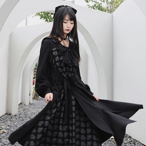 SEASONZ ゴスロリ系 ワンピ チェック柄 ブラックチェリー フェイクレイヤード リボン ロリータ ゴシック 病み可愛い ゆめかわ