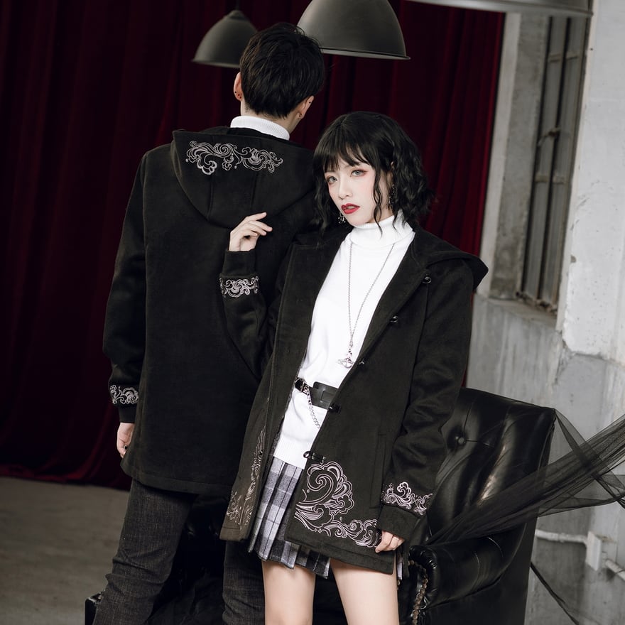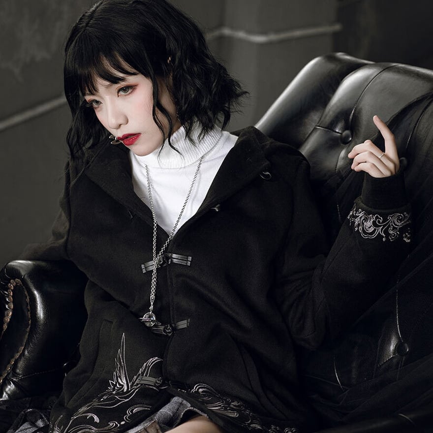 チャイナボタンに大きめなフード付きのレトロなデザインが新しい