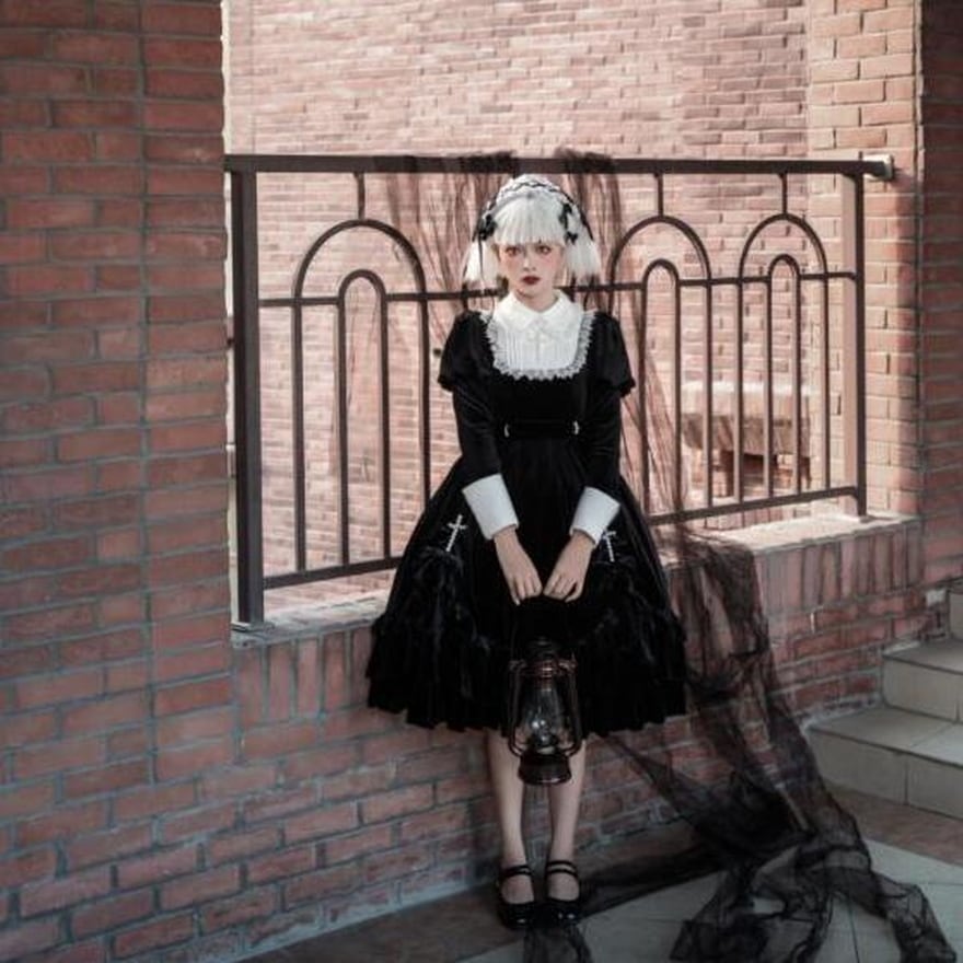 SEASONZ ロリータ ゴシック 十字架 レース ハイウエスト 病みかわいい フェイクパール レトロ コンカフェ 舞台衣装 ゆめかわ
