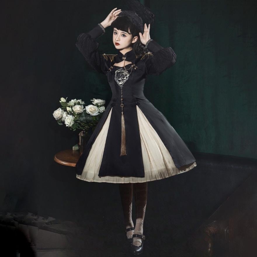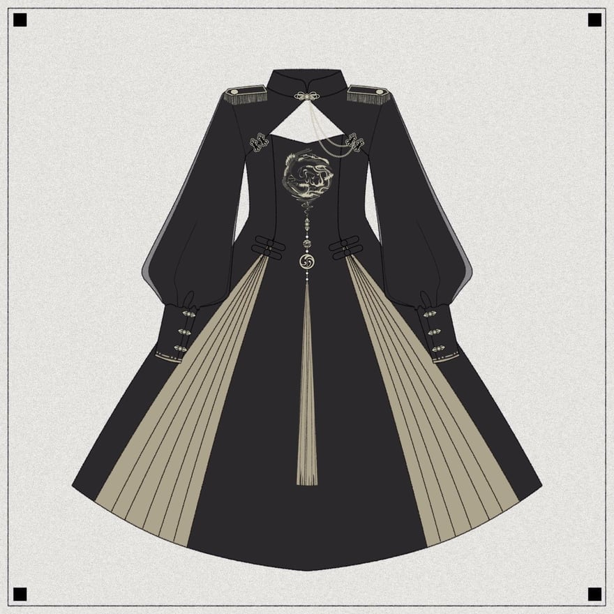 SEASONZ 軍服ロリータ かっこいい 軍服 チャイナ服 刺繍 タッセル スリットスカート 病みかわいい ゴシック ロマンティック