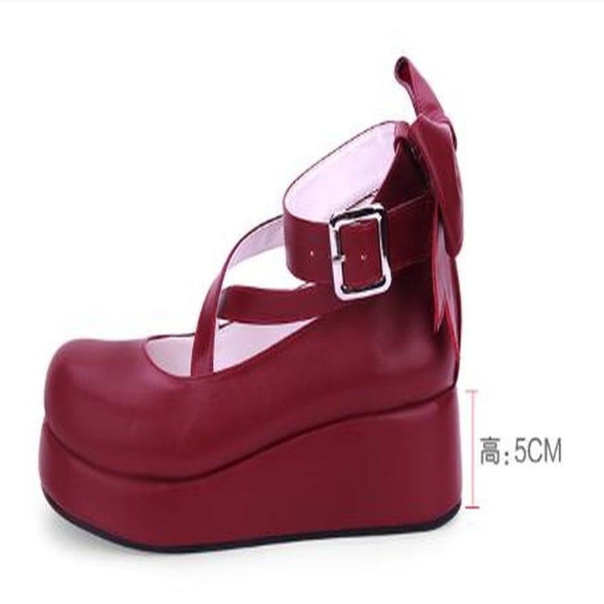 SEASONZ ロリータ 厚底 靴 パンプス リボン ストラップ パンプス お嬢様 ゆめかわ