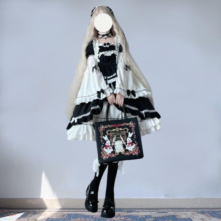 取り外し可能なトランペットスリーブがゴージャスなレトロ甘ロリワンピです