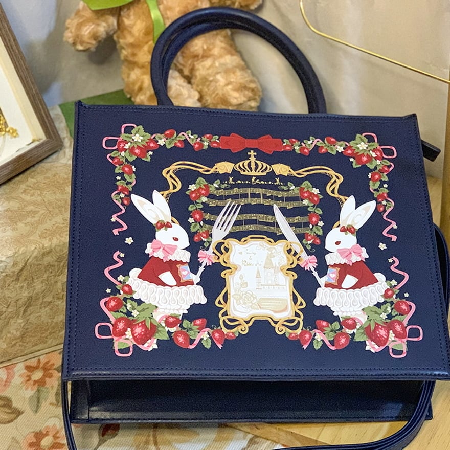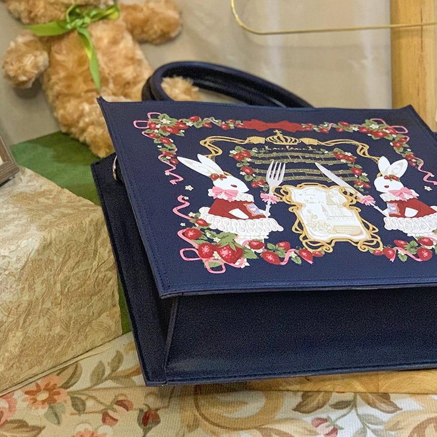 SEASONZ ロリータ ハンドバッグ トートバッグ いちごとラビット ファスナー ポケット収納 ゆめかわ