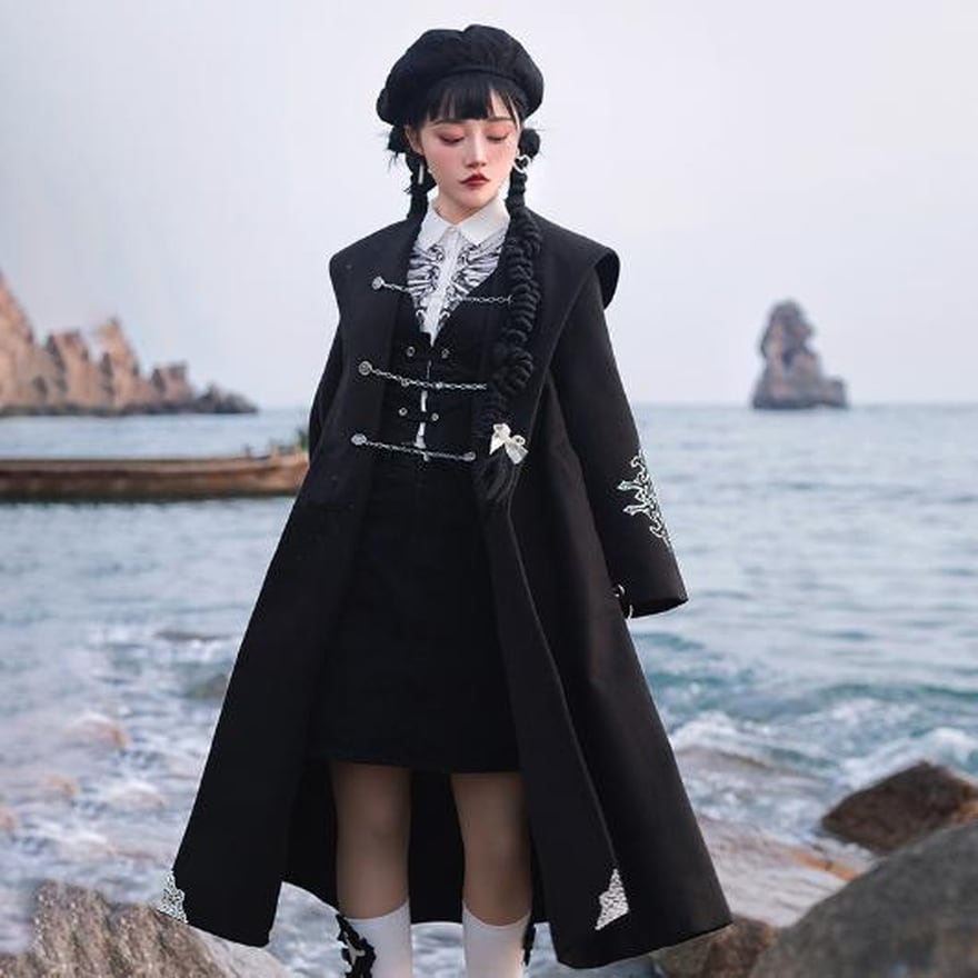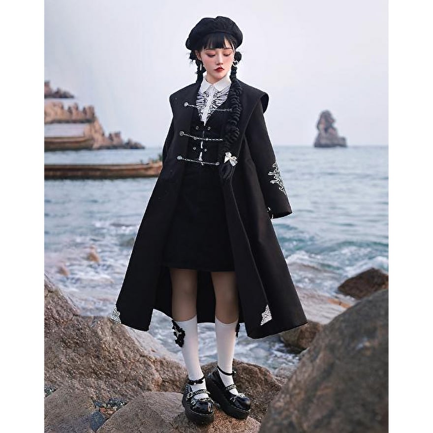 SEASONZ ロリータ ゴシック ゴスロリ アウター コート ベスト セット チェーン 刺繍 暗黒系 病みかわいい ゆめかわ
