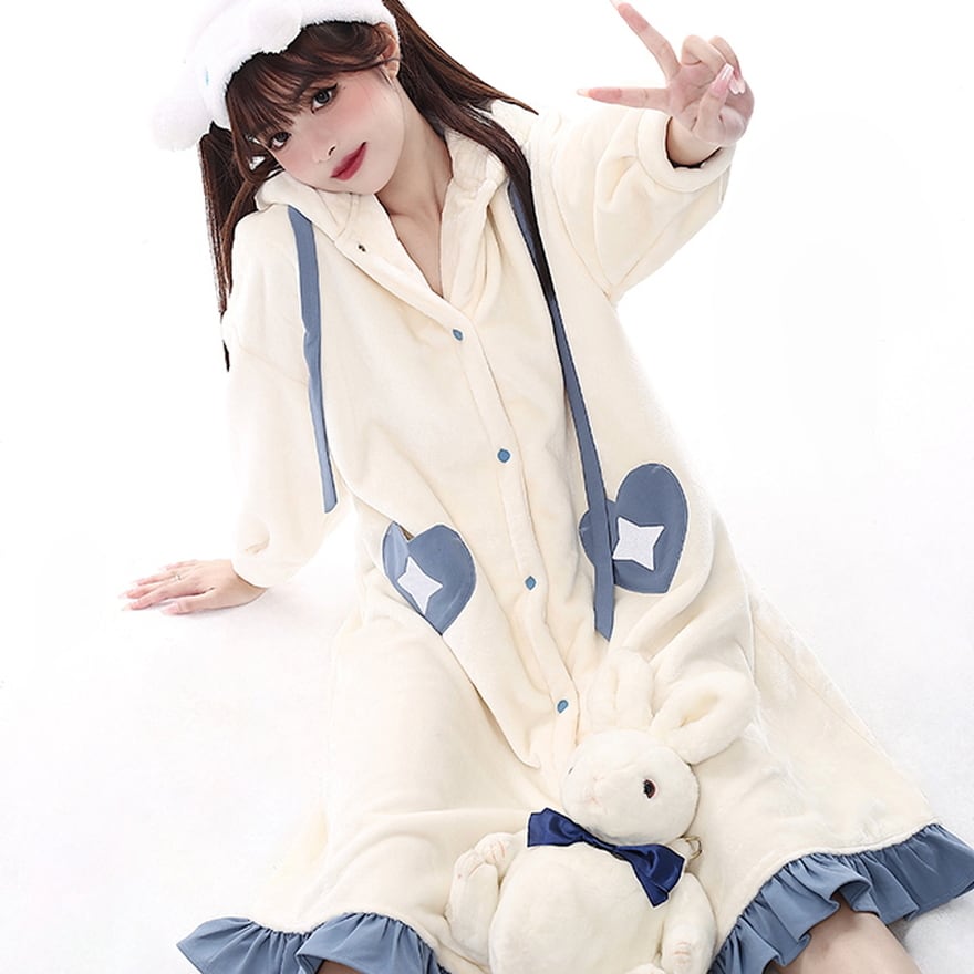 フリース生地に可愛いねこ耳がビジュアル抜群、室内着としてもおすすめ