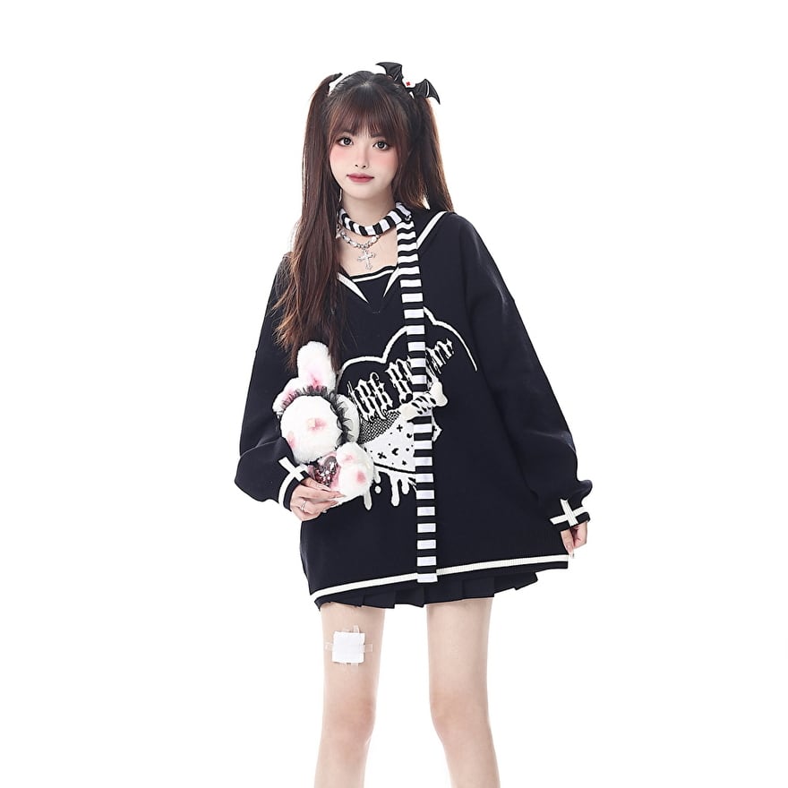 SEASONZ サブカル系 CRAZYGIRL セーター セーラー風 Love 溶けるハート JK 甘め ストリート系 かわいい ロリータ好き ゆめかわ