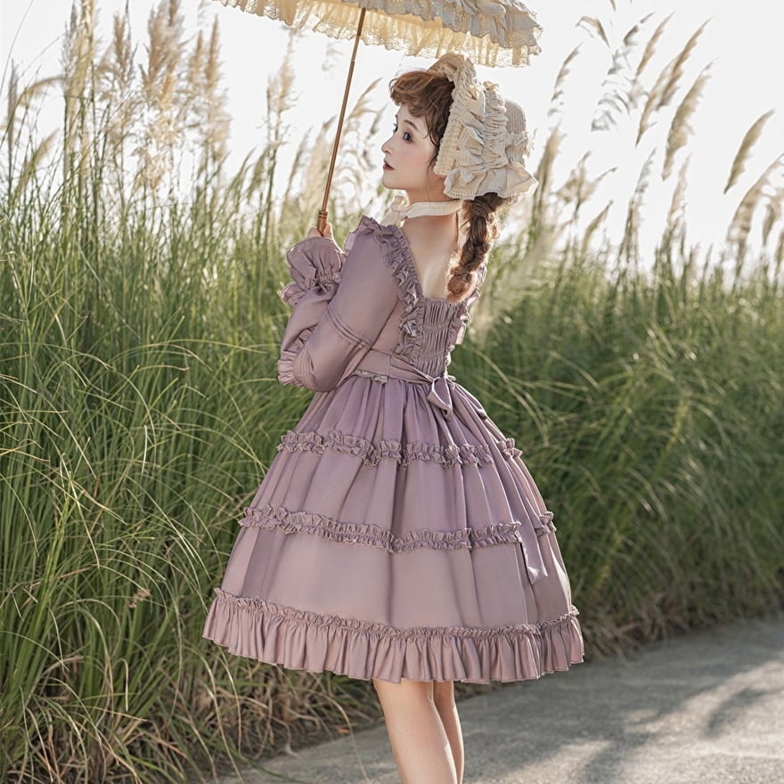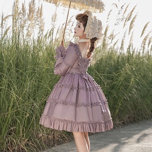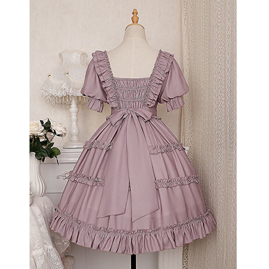 SEASONZ ロリータ クラロリ ワンピース ドレス ミドル丈 フリル スクエアネック クラシック クラロリ レトロ かわいい 甘い サブカル系 ゆめかわ