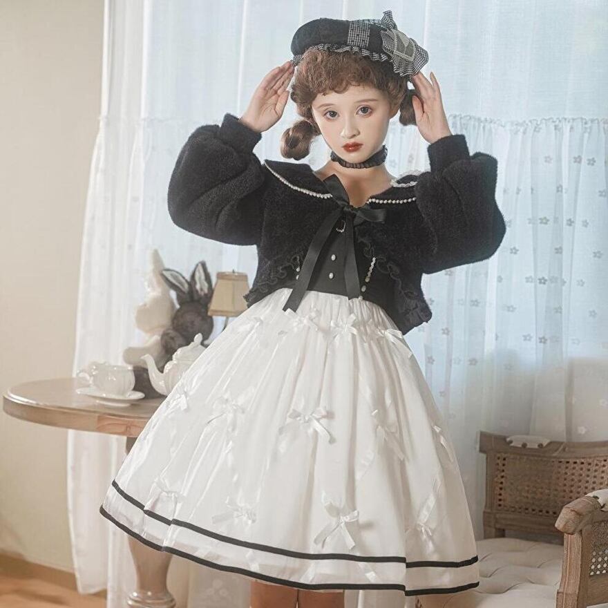 シンプルなモノトーンのクラシカルロリータツーピースです。