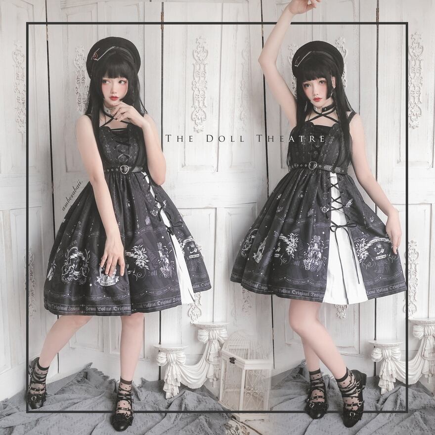 ちょっぴりダークなイラストがプリントされたゴスロリ系ワンピースです。