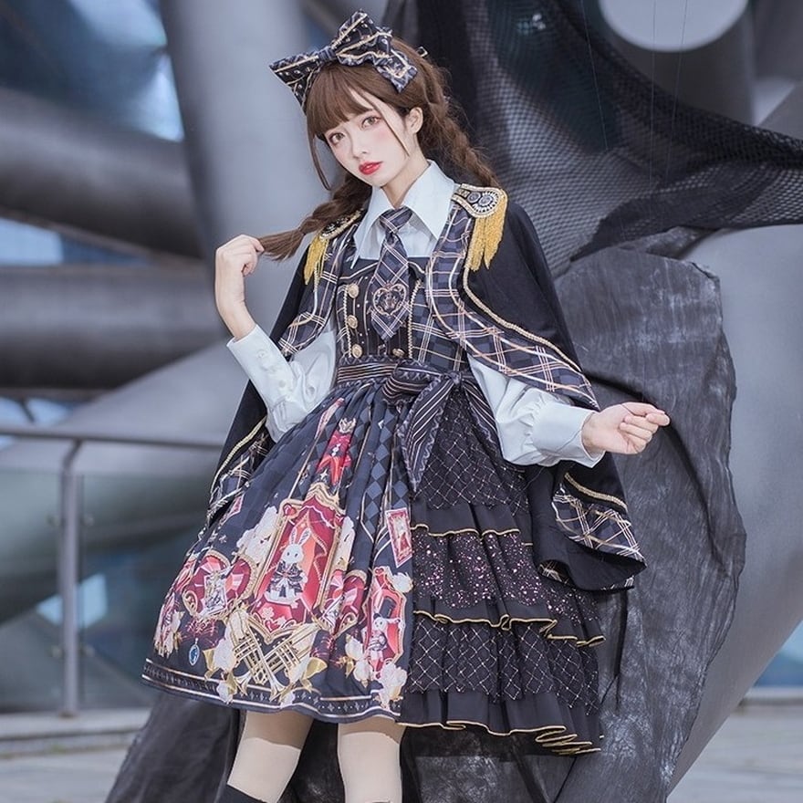 キュートでお茶目なうさちゃんバンドプリント柄の甘ロリJSK ジャンパースカートです。