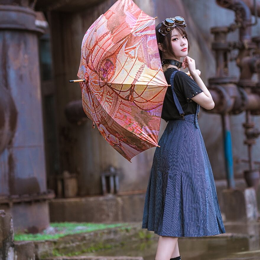 電脳異世界を表現するサブカルファッションの一つ、スチームパンクのツーピースAラインスカートです