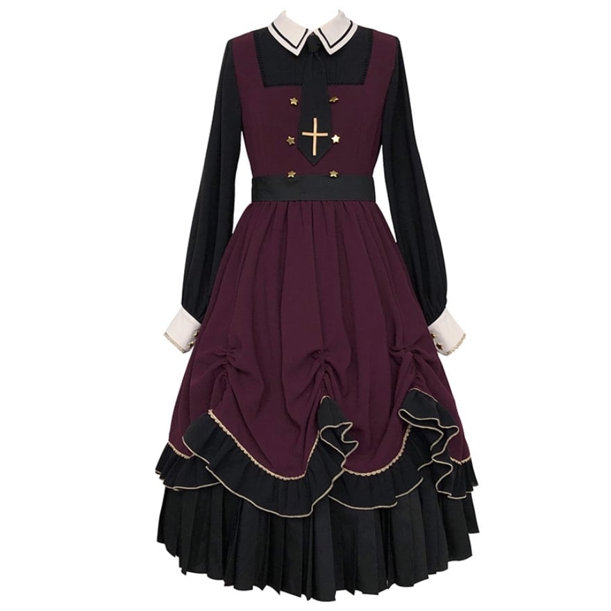 SEASONZ 軍服ロリータ風 軍服 セットアップ オールインワン ワンピ ハイウエスト フレアスカート 十字架 ネクタイ