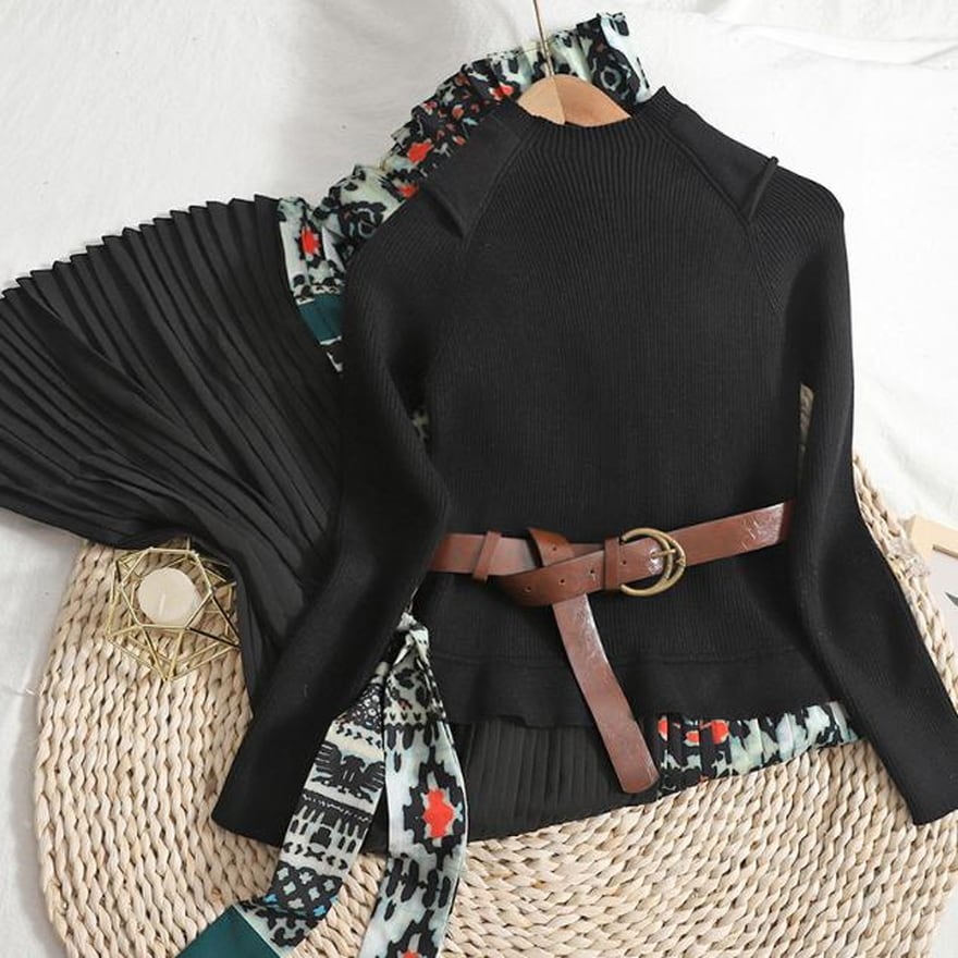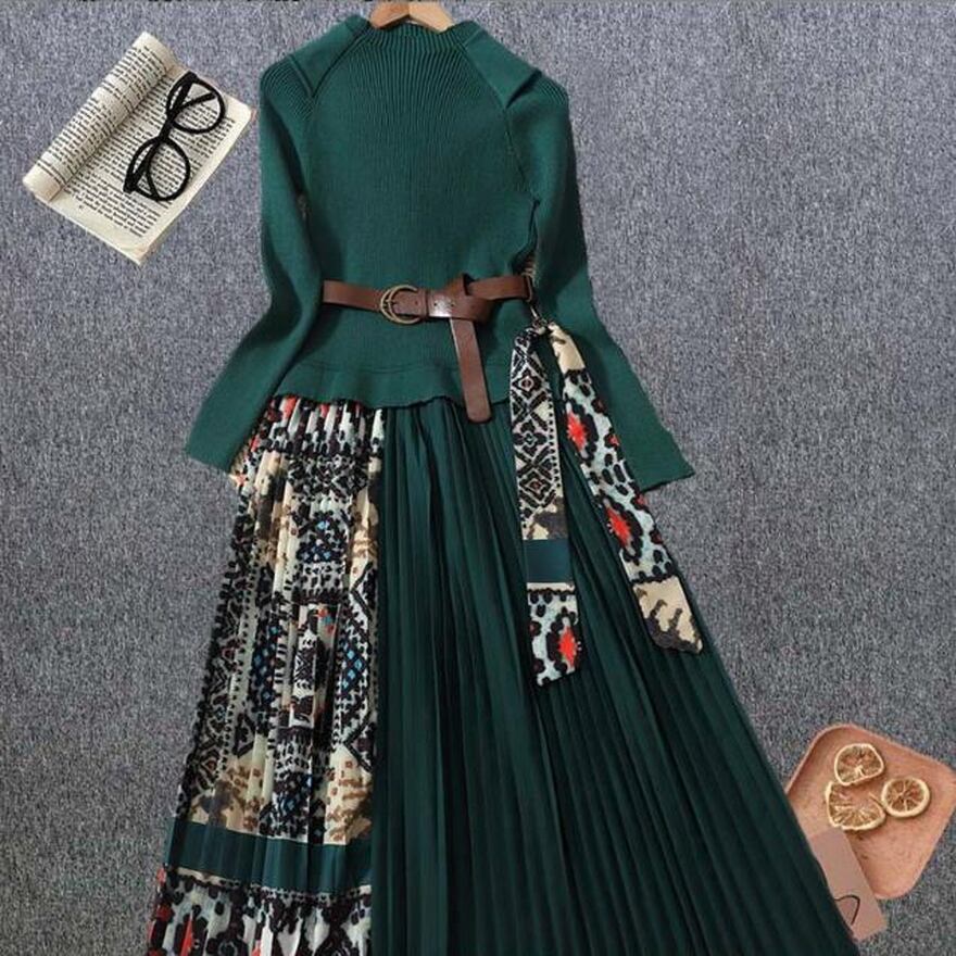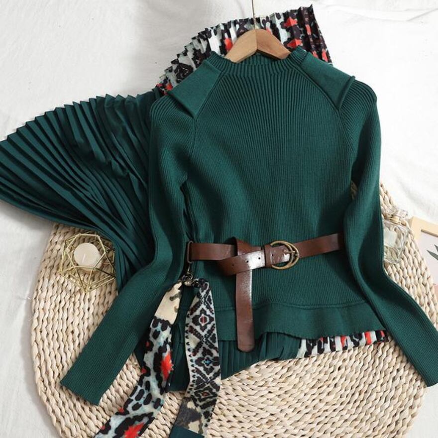 上品で大人きれいめなニットセーターとプリーツスカートのワンピになります。