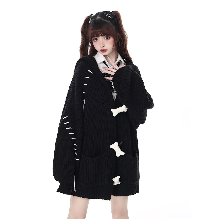 SEASONZ ロリータ CRAZYGIRL カーディガン フード付き ツギハギ 骨ボタン ソフトロリータ 甘め JKファッション ゆめかわ