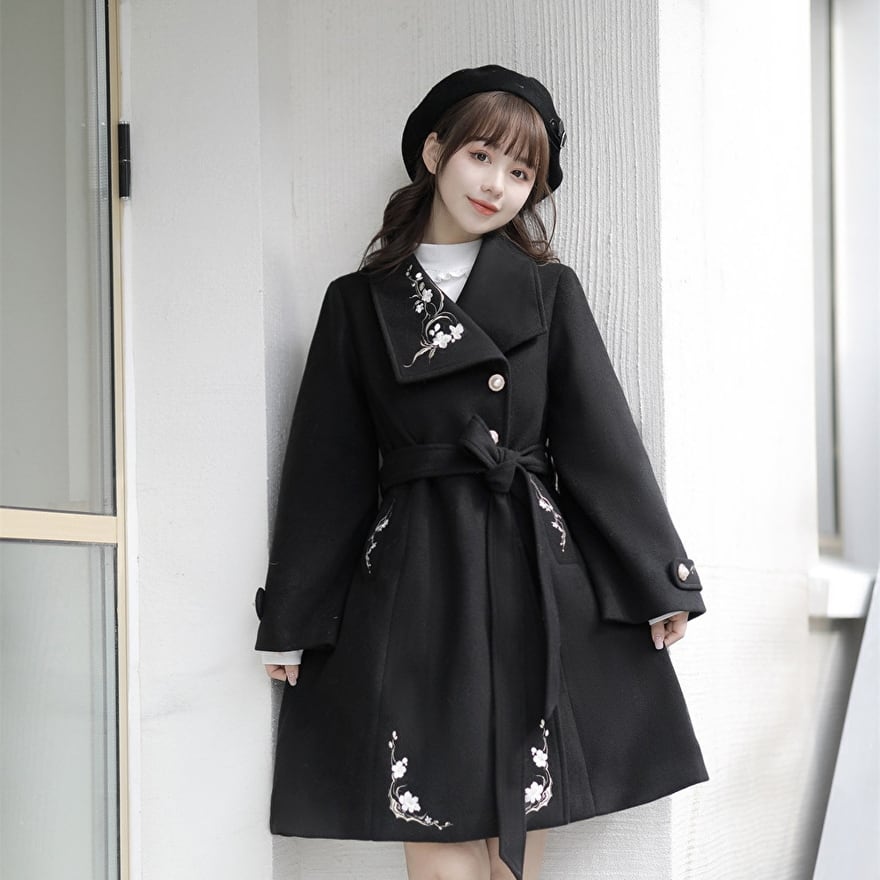 SEASONZ ロリータ 華ロリ コート ウエストベルト チャイナ風 刺繍 中華刺繍柄 トランペットスリーブ ロリータ おしゃれ増し