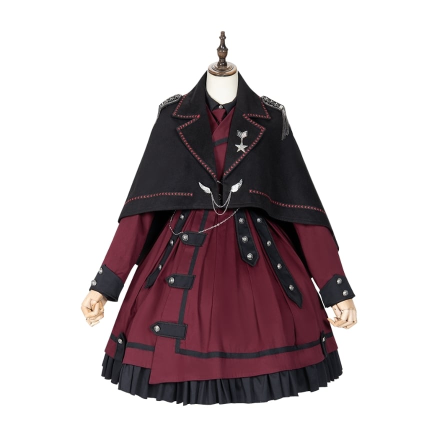 SEASONZ 軍服ロリータ 軍服ロリータワンピ コート マント ステッチ バッチ コスプレ コンカフェ 舞台衣装 ロマンティック