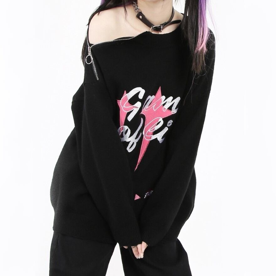 SEASONZ Catwish ロリータ JK セーター 刺繍 オフショル ZIP プルオーバー ストリート系 地雷 原宿 ゆめかわ