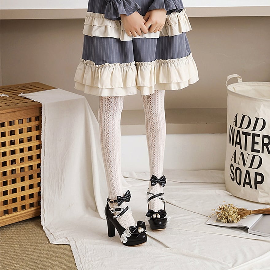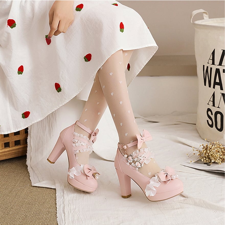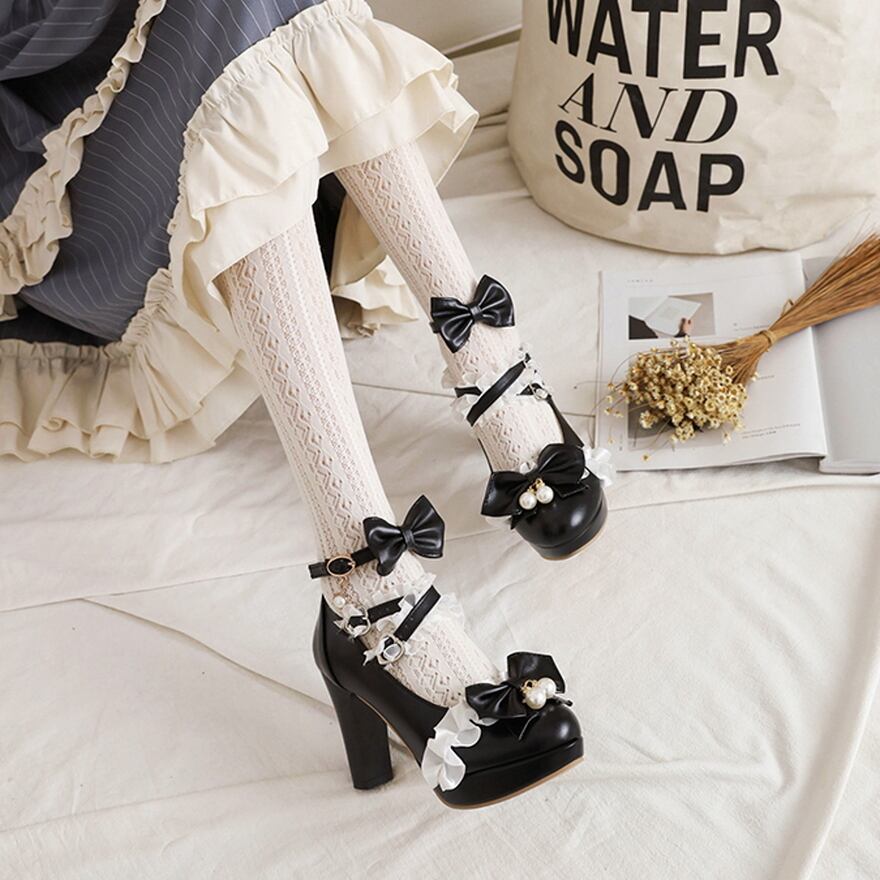 SEASONZ プリンセス シューズ ハイヒール スイートロリータ フェイクパール リボン かわいい ゆめかわ