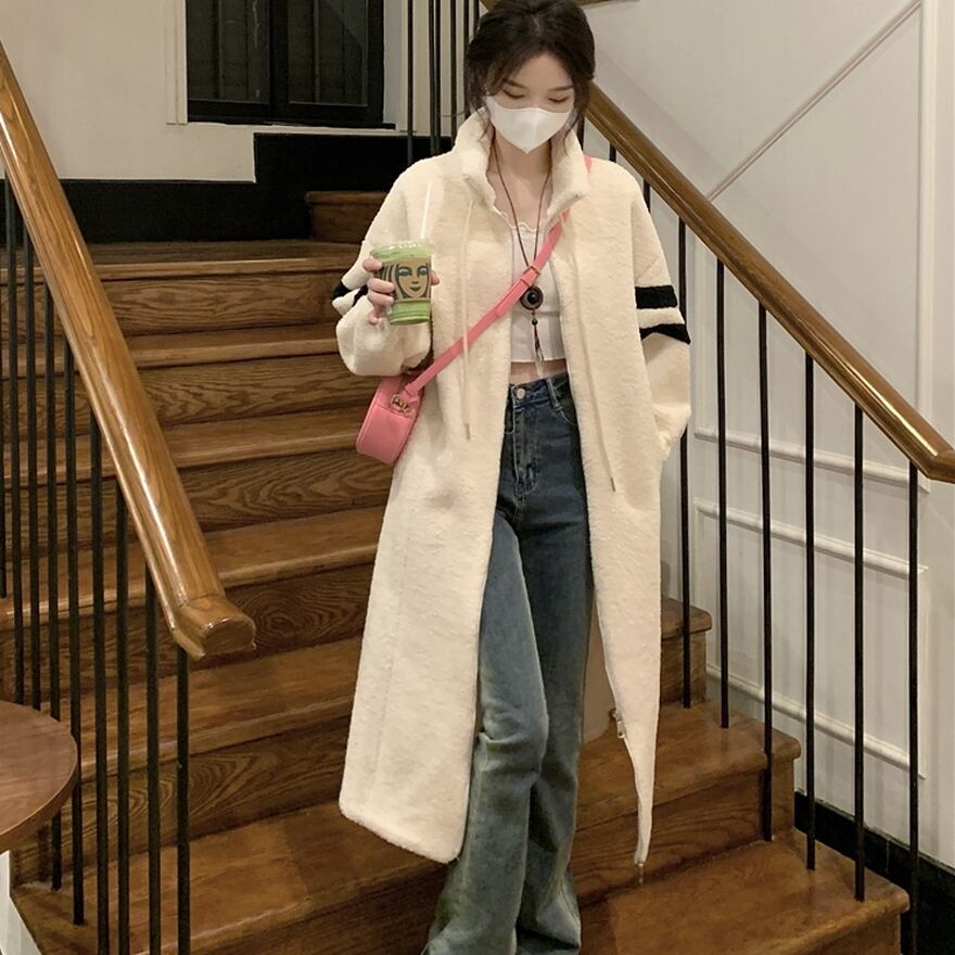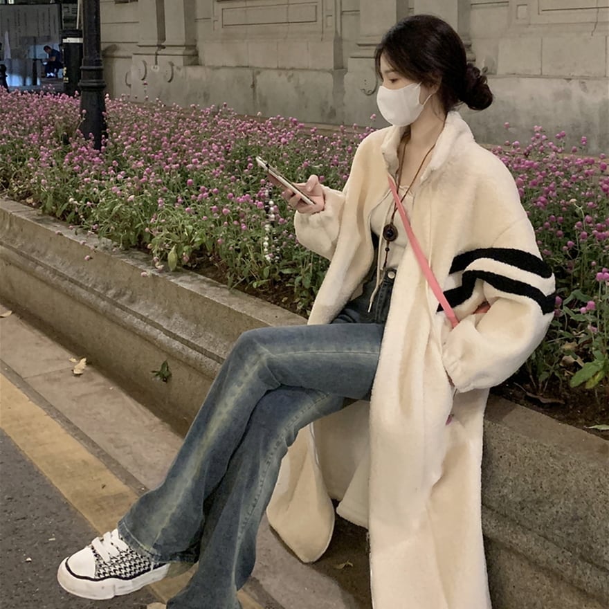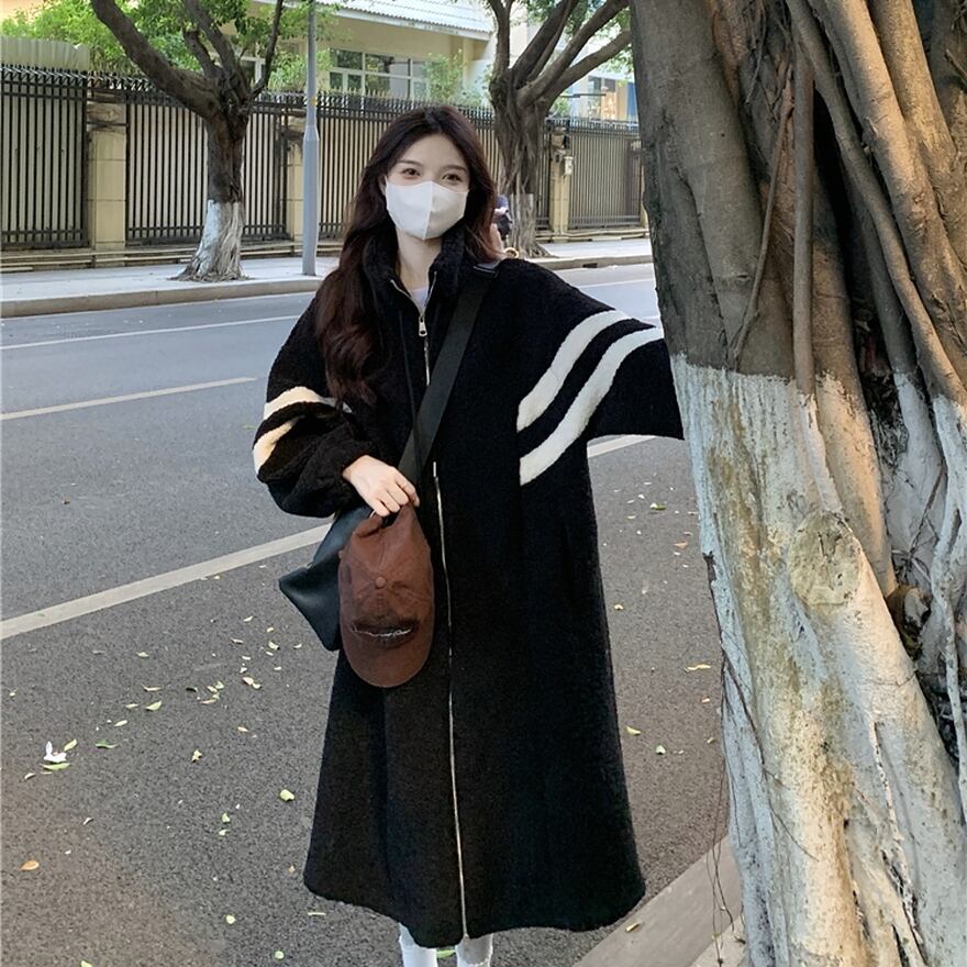 SEASONZ ゴスロリ系 ロングコート ZIPアップ ふかふか もこもこ ボーダー ストリート系 普段使い カジュアル ゆめかわ