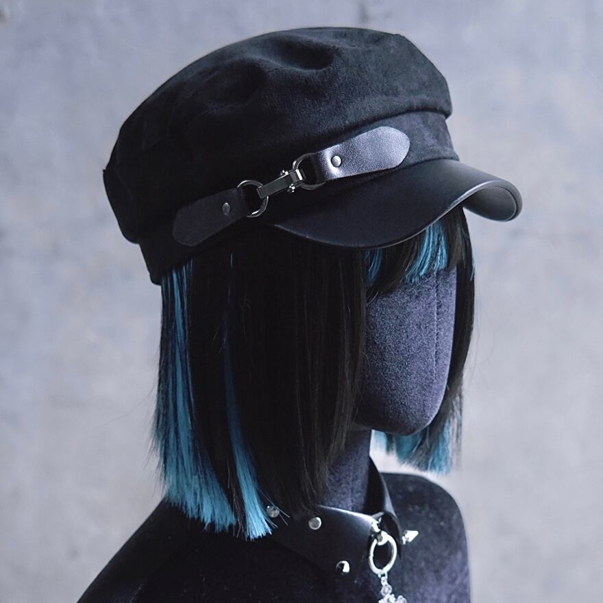 レザーのツバが高見えな病み可愛いキャスケットハットです。