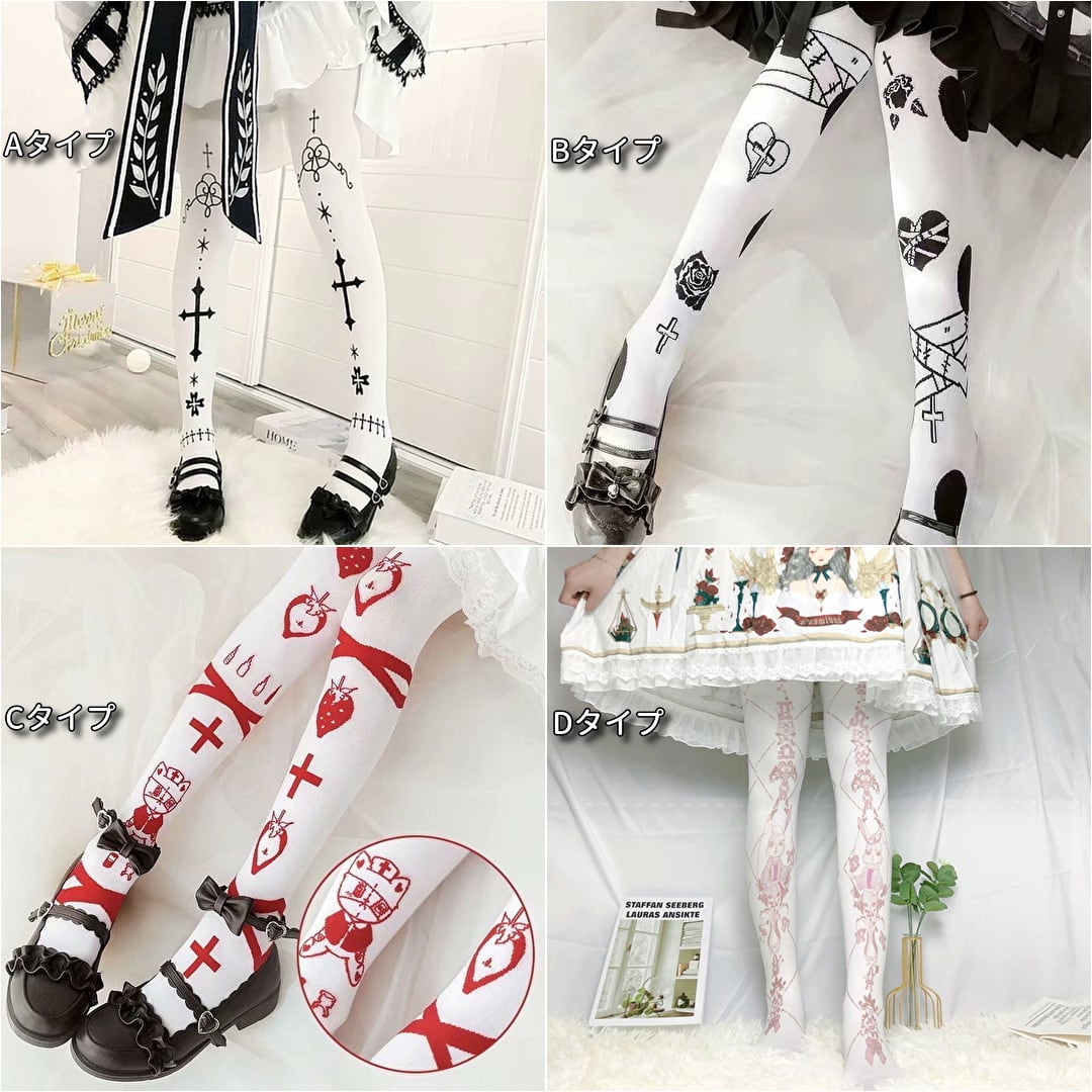 甘ロリソックスからゴスロリ系ソックスまでタイプが異なるニーハイソックスです。