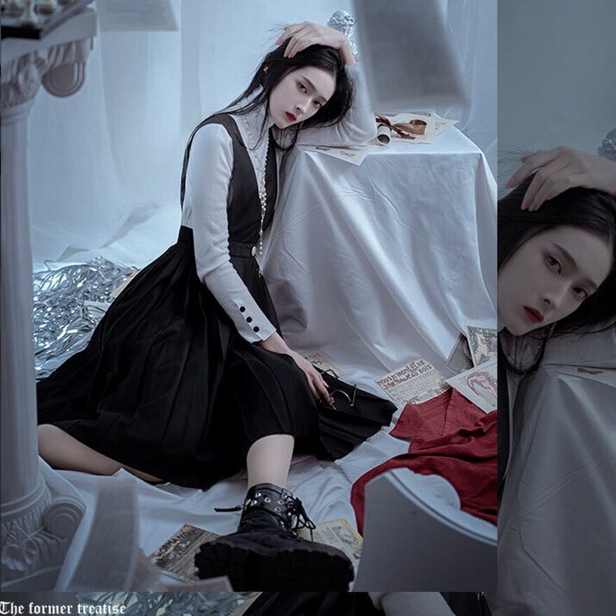 SEASONZ ロリータ服 オールインワン シスターコート シャツ プリーツスカート 3点 セット割り 高見え 大人ゴシック 美的 病み可愛い ゆめかわ