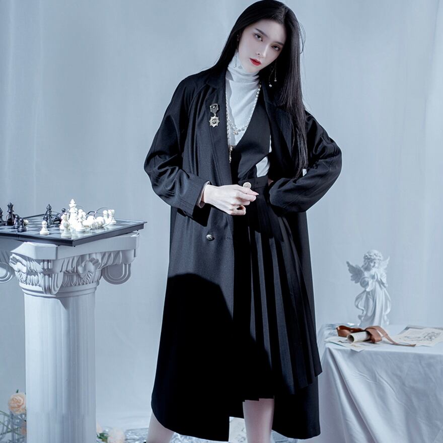 高見えする大人ゴシックなシスターコートにシャツ、プリーツスカートの3点セット割りです。