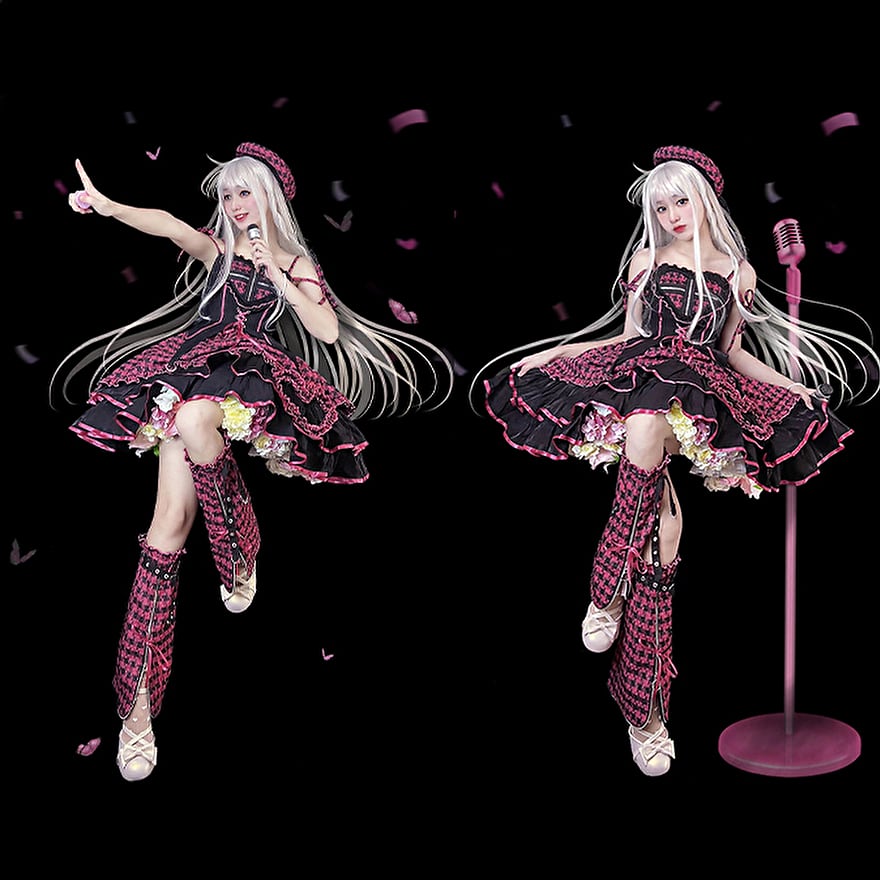 コンカフェ 衣装 アイドル衣装 レッグスリーブ レザーベルト パンクファッション グリッド チェック柄 イベント衣装 ゆめかわ|SEASONZ