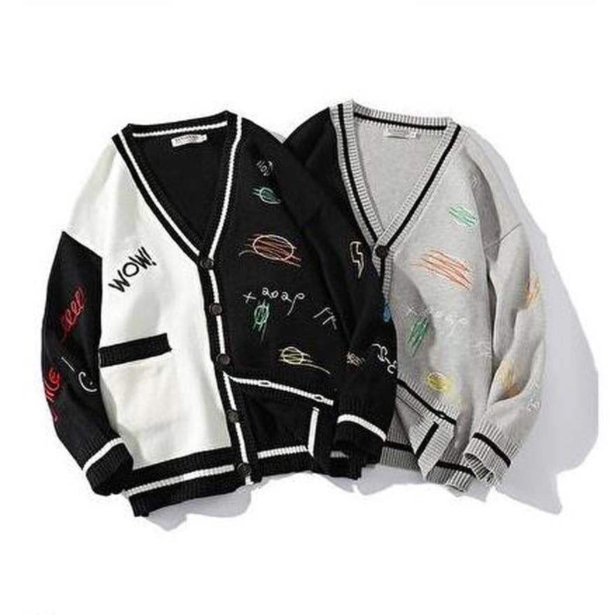 カラフルな色使いがおしゃれなVネックカーディガンです。