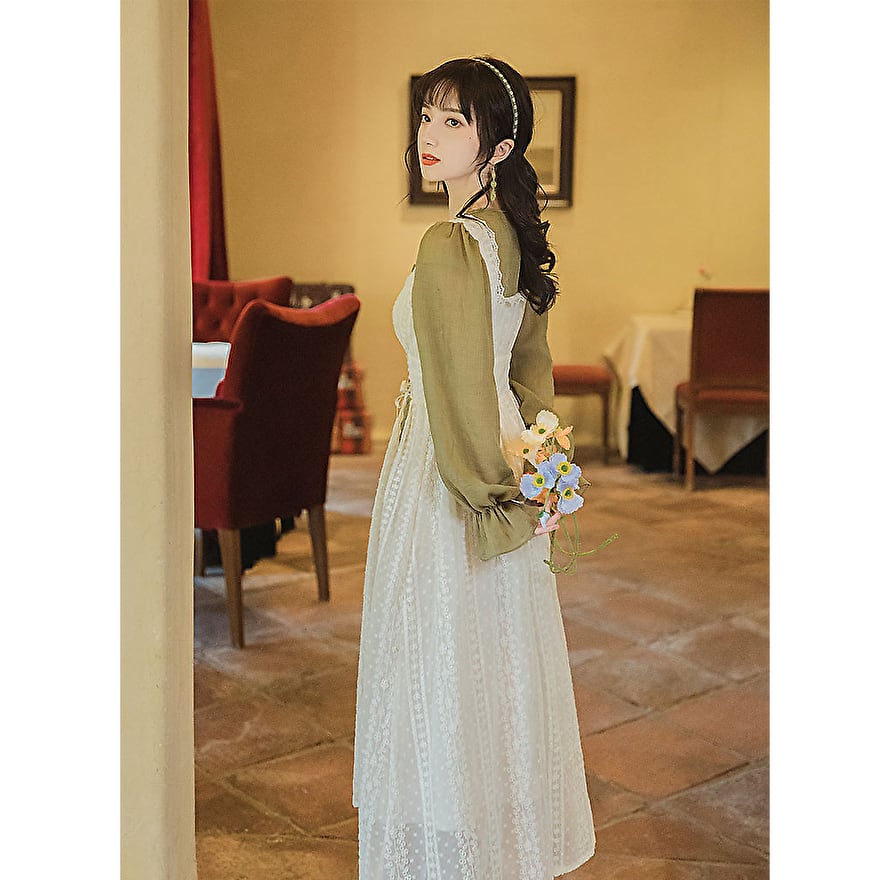SEASONZ ワンピース 袖コン バルーンスリーブ 編上げ ハイウエスト クラロリ クラシカルロリィタ フレンチロリータ 清楚 控えめ 郷愁 かわいい ゆめかわ